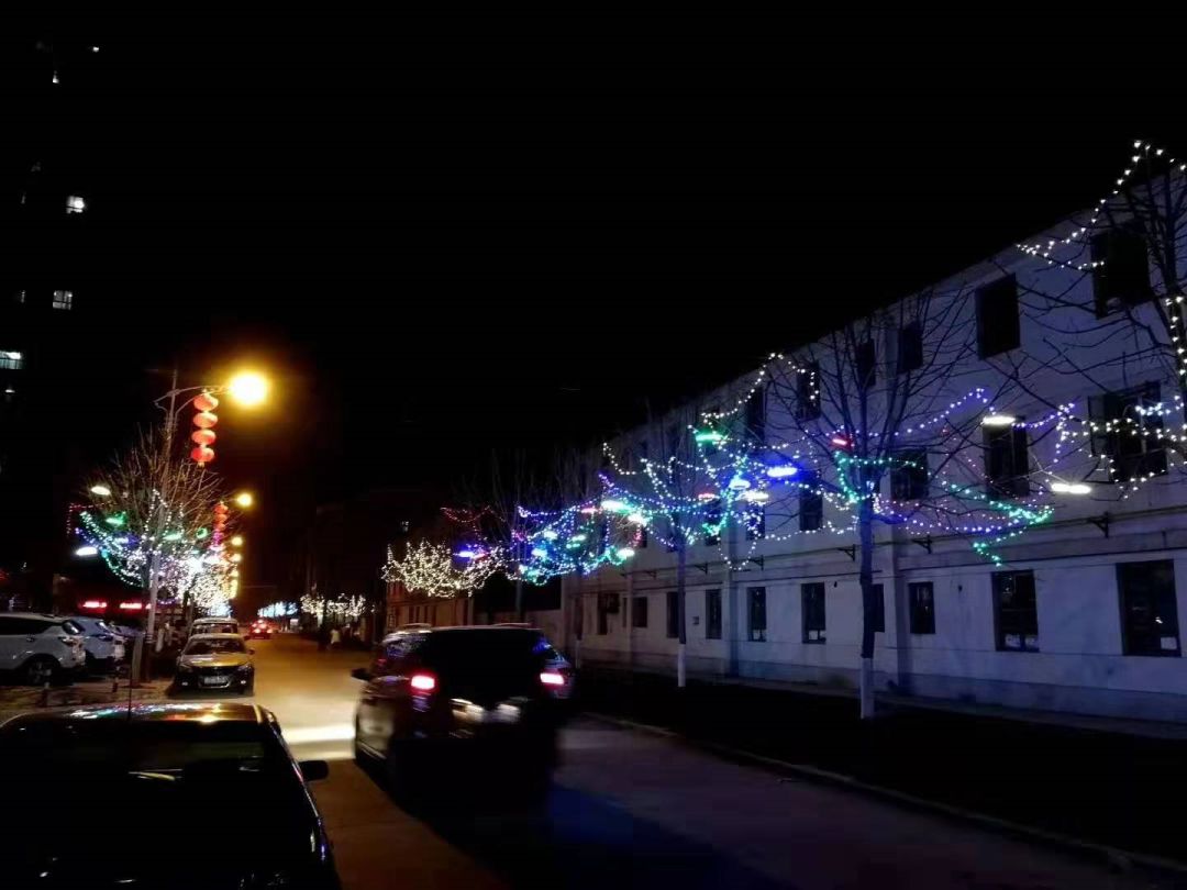 115厂的秦岭中学,大门和房子挨得这么近    这些五十年代的老房子在璀璨的灯光下显得有点落寞
